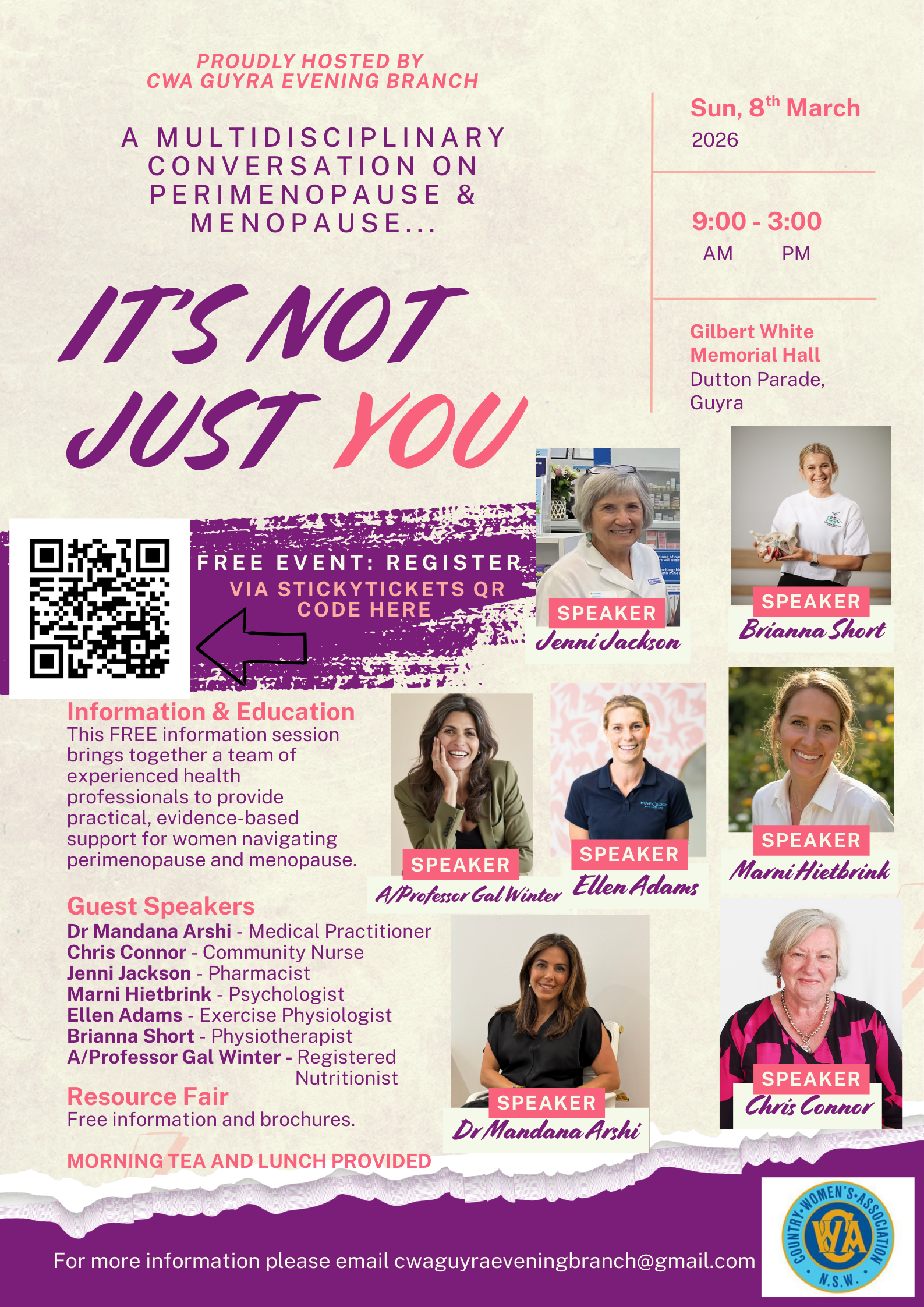 All are welcome (even the blokes!). Rally your friends and register your seats now! You can use the QR code on the flyer, or via here https://www.stickytickets.com.au/.../perimenopause...